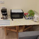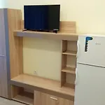 Luxury Relax Studio Neptune的房间内有微波炉,电子热水壶和冷冻机. 步行5分钟就能到Neptun汽车站.